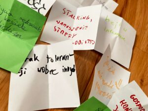 Na ostatnich zajęciach skoncentrowaliśmy się na kwestiach dotyczących hejtu, radzenia sobie ze stresem i napięciem oraz wyzwaniach związanych z edukacją. Dzięki otwartym rozmowom i praktycznym narzędziom, młodzież zdobyła wiedzę i umiejętności niezbędne do skutecznego radzenia sobie z trudnościami.